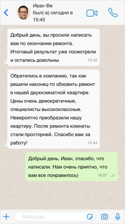 Выполняем доставку строительных материалов, подготовим дизайн-проект по желанию клиента. На цену ремонта влияет площадь помещения, срок работы и выбор строительных материалов. Сделаем ремонт в любой комнате: в гостиной, кухне, туалете, спальне, независимо, от того проживаете вы в хрущёвке или новостройке.